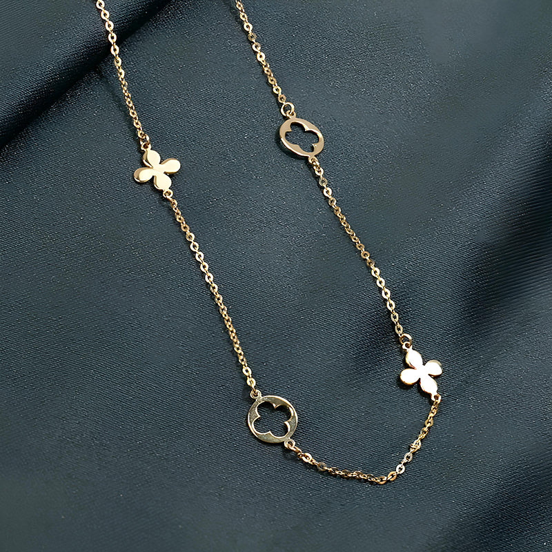 Elegant and timeless, the Golden Clover Necklace is inspired by the symbol of luck and beauty. Featuring delicate clover-shaped charms in both solid and cut-out designs, this necklace creates a graceful balance of simplicity and sophistication.