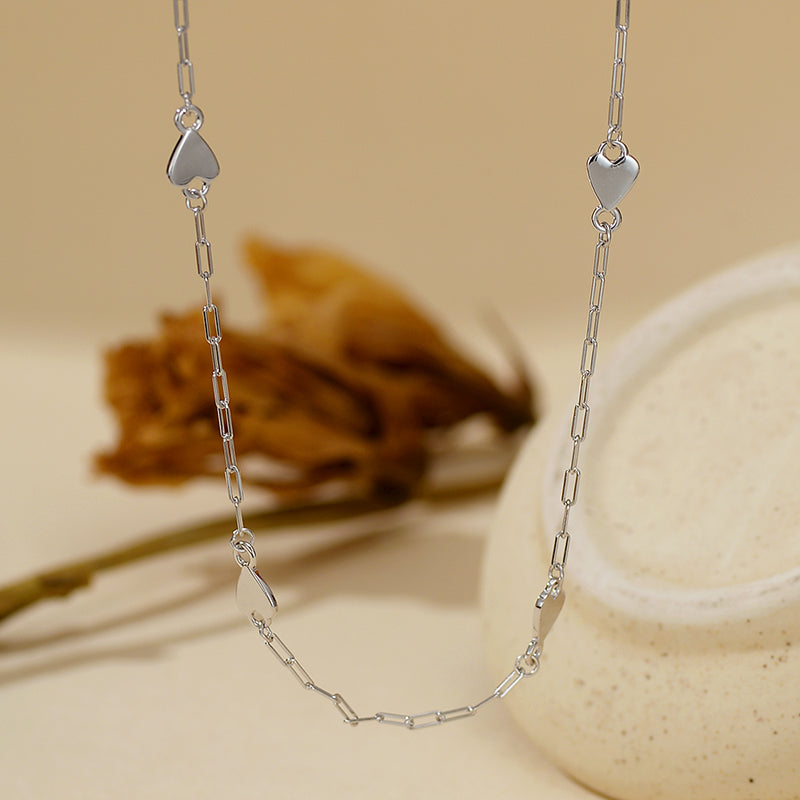 Embrace effortless elegance with our charming Scattered Hearts Sterling Silver Necklace. This captivating necklace is meticulously crafted from premium Silver S925 sterling silver, showcasing a series of beautifully polished, dainty heart charms thoughtfully spaced along a shimmering, fine chain. Each heart catches the light, creating a subtle yet enchanting sparkle that will elevate any outfit.