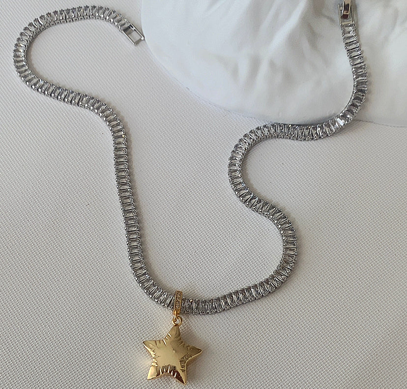 Simply Shiny Tennis Neckless with Chunky Golden Star