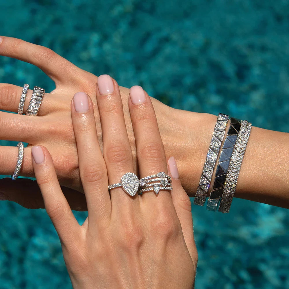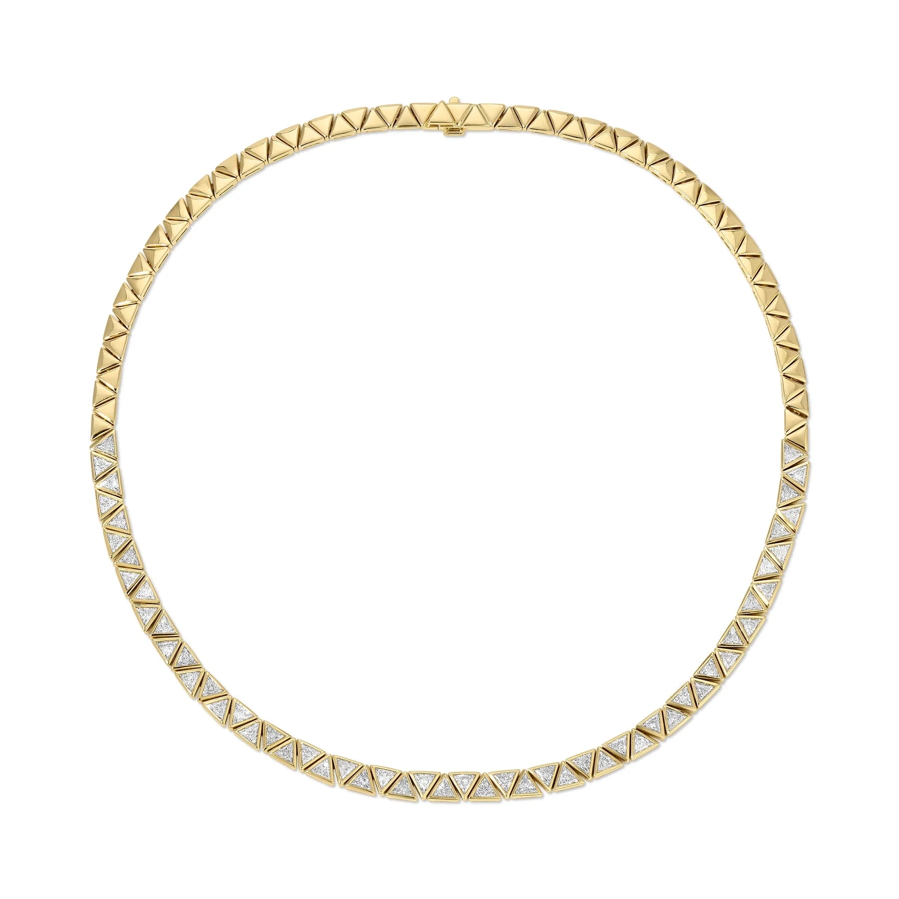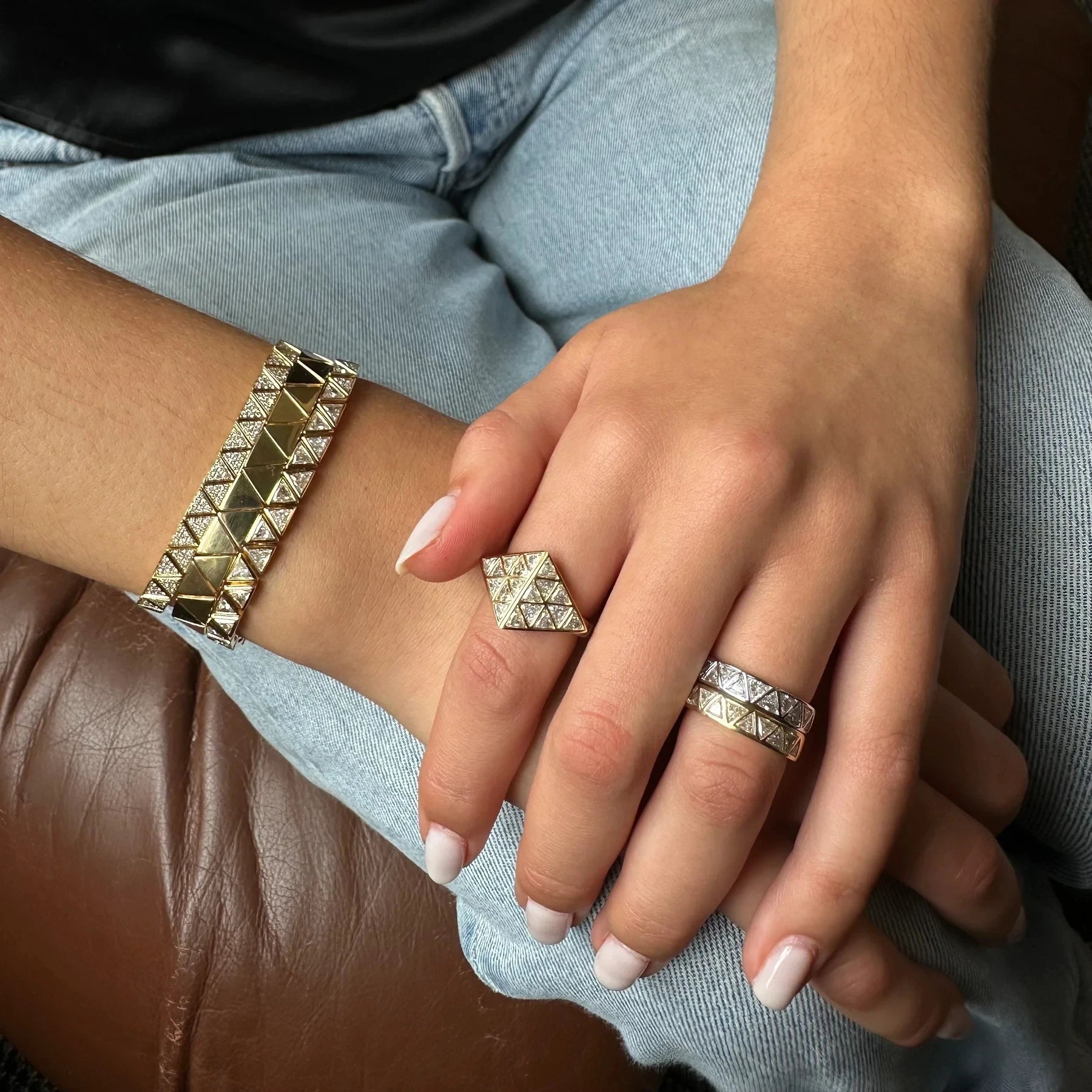 Discover the essence of versatile elegance with our "Versa" Collection. This captivating line features sophisticated pieces that effortlessly transition from day to night. Each item showcases a modern, geometric motif, where triangular links and sleek bar shapes are meticulously crafted and adorned with brilliant cubic zirconia stones. The collection is available in both radiant 18K gold-plated and stunning silver-plated finishes, offering you the freedom to mix, match, and express your unique style.