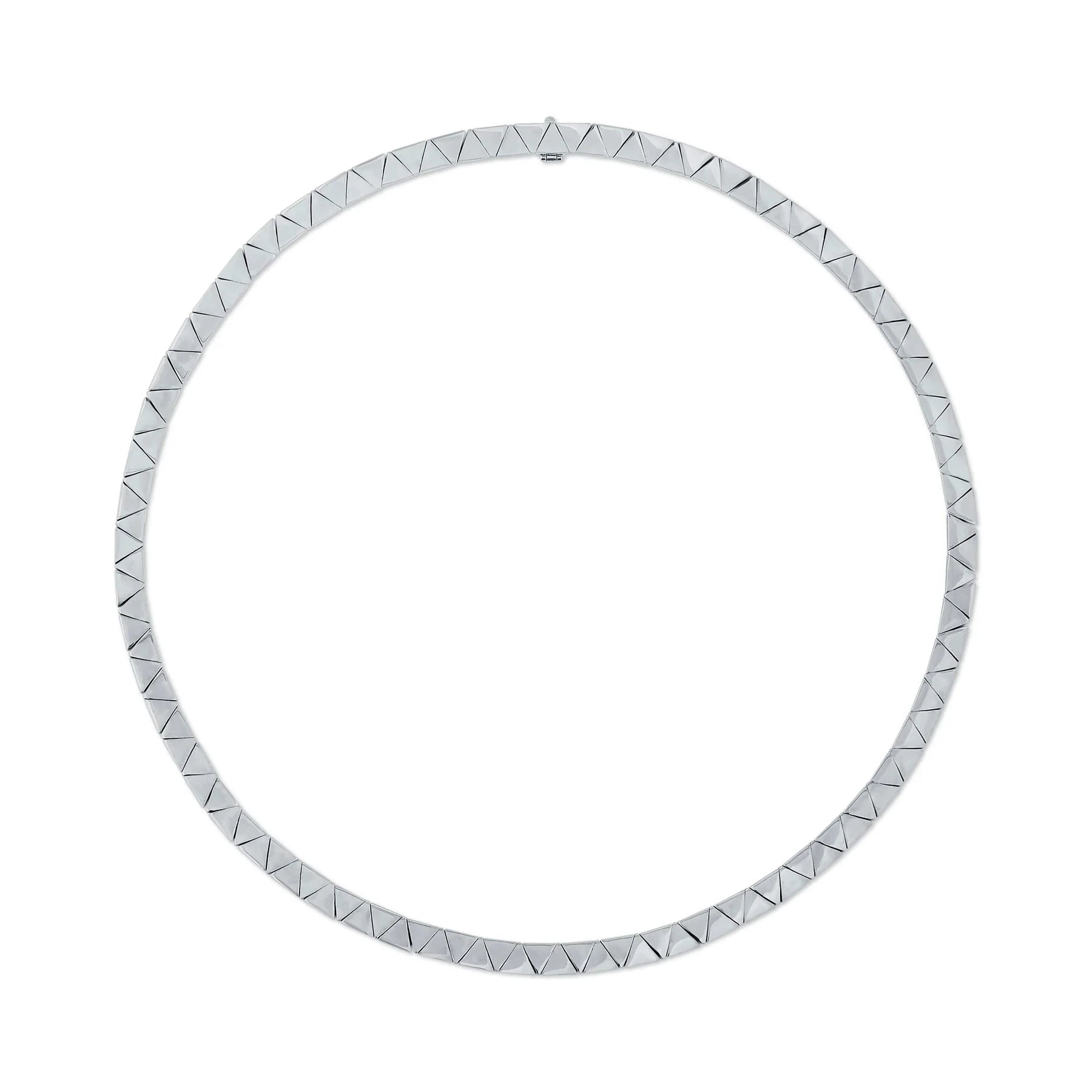Design: A variety of geometric and modern styles, including triangular links and bar-shaped charms